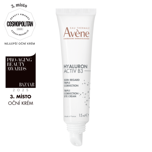 S vekom sa všetko zrýchľuje. Počet starnúcich buniek sa zvyšuje a pokožka funguje pomalšie. Dermatologické laboratóriá Avène vytvorili Hyaluron Activ B3 očný krém s trojitým účinkom, ktorý obsahuje dextrán sulfát, čistú kyselinu hyalurónovú (s nízkou a vysokou molekulárnou hmotnosťou) a 6% niacínamid, ktoré spoločne pôsobia proti príčinám starnutia a predlžujú životnosť buniek*. Hyaluron Activ B3 očný krém s trojitým účinkom obsahuje 93% zložiek prírodného pôvodu bez živočíšnych zložiek. Jeho gélovo krémová textúra osviežuje pokožku ihneď po aplikácii. Výsledkom je spevnená pokožka a vyhladené vrásky v oblasti očí. Zmierňuje tmavé kruhy a vačky pod očami Produkt je bez vône, určený pre citlivú pokožku krehkých očných partií. Môže sa použiť aj okolo pier. Je tiež dobrým podkladom pre make-up.