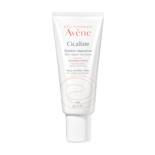 Obnovujúca emulzia Cicalfate po zákrokoch upokojuje podráždenie a návaly tepla spôsobené povrchovými dermatologickými zákrokmi. Je bezfarebná, nelepivá a bez parfumácie, pomáha obnoviť podráždenú pokožku.
