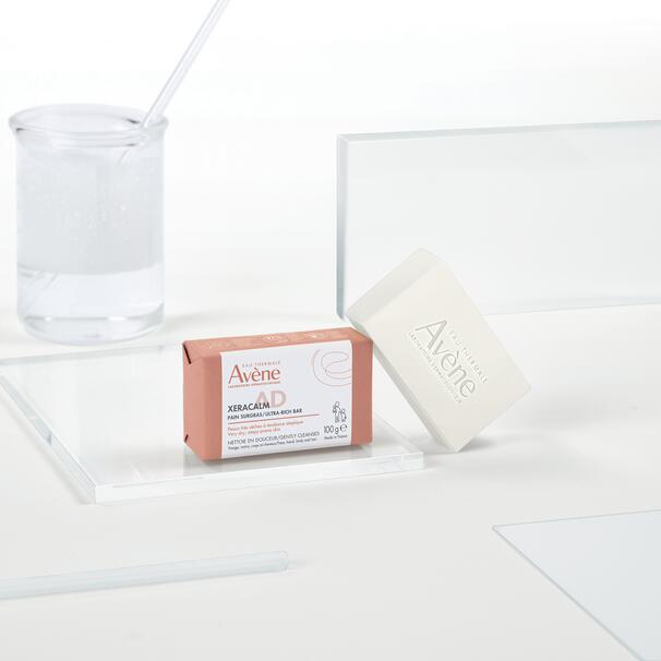 XERACALM A.D Ultra vyživujúca umývacia kocka jemne čistí a chráni veľmi suchú pokožku so sklonom k atopickému ekzému a svrbeniu. Táto dermatologická umývacia kocka bez mydla s vysokou znášanlivosťou, veľmi jemným čistiacim základom a neutrálnym pH je dokonale vhodná pre pokožku dojčiat, detí a dospelých. Neparfumovaná a nekomedogénna. Vyvinutá s cieľom minimalizovať riziko vzniku alergických reakcií. Jej zloženie je účinnou kombináciou aktívnych látok : I-modulia®, prvá postbiotická aktívna látka získaná z termálnej vody Avène, ktorá zmierňuje svrbenie*, stimuluje obranyschopnosť pokožky a pôsobí proti podráždeniu, lipidická fáza, ktorá vyživuje a obnovuje kožnú bariéru vďaka oleju z pupalky dvojročnej a termálnej vode Avène, ktorá prirodzene upokojuje, zjemňuje a pôsobí proti podráždeniu.