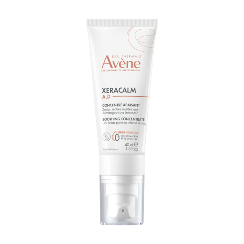 XeraCalm A.D Upokojujúca koncentrovaná starostlivosť okamžite uľavuje suchým oblastiam so sklonom k intenzívnemu svrbeniu a atopickému ekzému. Ide o SOS starostlivosť s okamžitým účinkom proti škrabaniu vďaka účinnej kombinácii aktívnych látok : I-modulia®, prvá postbiotická aktívna látka získaná z termálnej vody Avène, ktorá zmierňuje svrbenie, stimuluje obranyschopnosť pokožky a bojuje proti podráždeniu, vysoko koncentrovaný ochranný a obnovujúci komplex, ktorý zmierňuje závažné stavy suchosti a obnovuje komfort pokožky, a termálna voda Avène, ktorá prirodzene upokojuje, zjemňuje a pôsobí proti podráždeniu. Ideálna na ošetrenie suchých ložísk s intenzívnym svrbením na tvári, očných viečkach a na tele. Vďaka unikátnej technológii Sterilná kozmetika®, ktorá udržuje výrobok sterilný po celú dobu jeho používania, a exkluzívnemu hermeticky uzavretému ochrannému obalu je táto SOS starostlivosť zárukou bezpečnosti a optimálne rešpektuje pokožku a kožný mikrobióm. Bez konzervačných látok, bez parfumácie, nekomedogénne, vyvinuté s cieľom minimalizovať riziko vzniku alergických reakcií. XeraCalm A.D Upokojujúca koncentrovaná starostlivosť je ideálna pre pokožku dojčiat, detí i dospelých.
